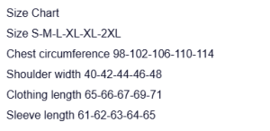 S, M, L, XL, XXL