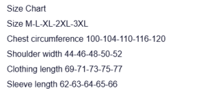 | SIZE | M, L, XL, XXL, XXXL |